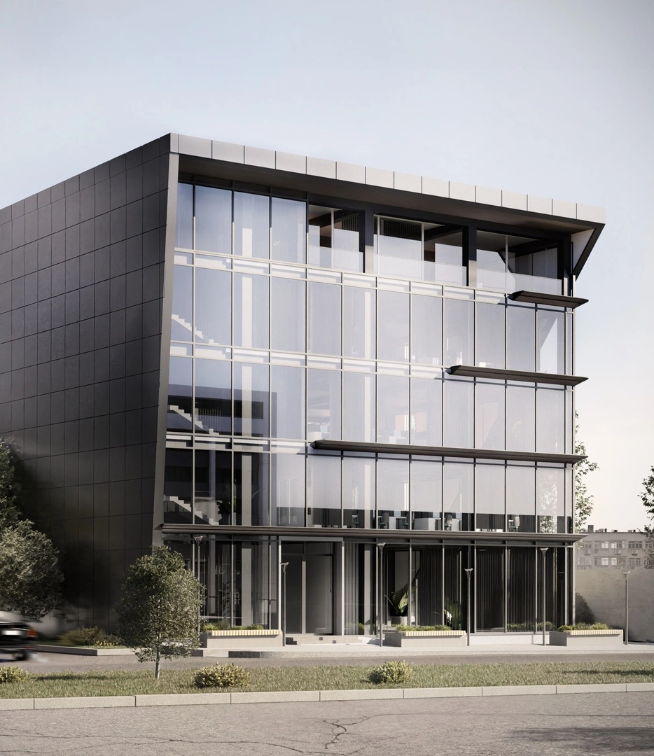 The project is a business center located at 75/1 Arshakunyats Avenue, Yerevan. The building consists of five above-ground floors and one basement level. It is designed to be accessible for people with reduced mobility. The roof is flat with an internal drainage system. The architectural style of the building is contemporary.