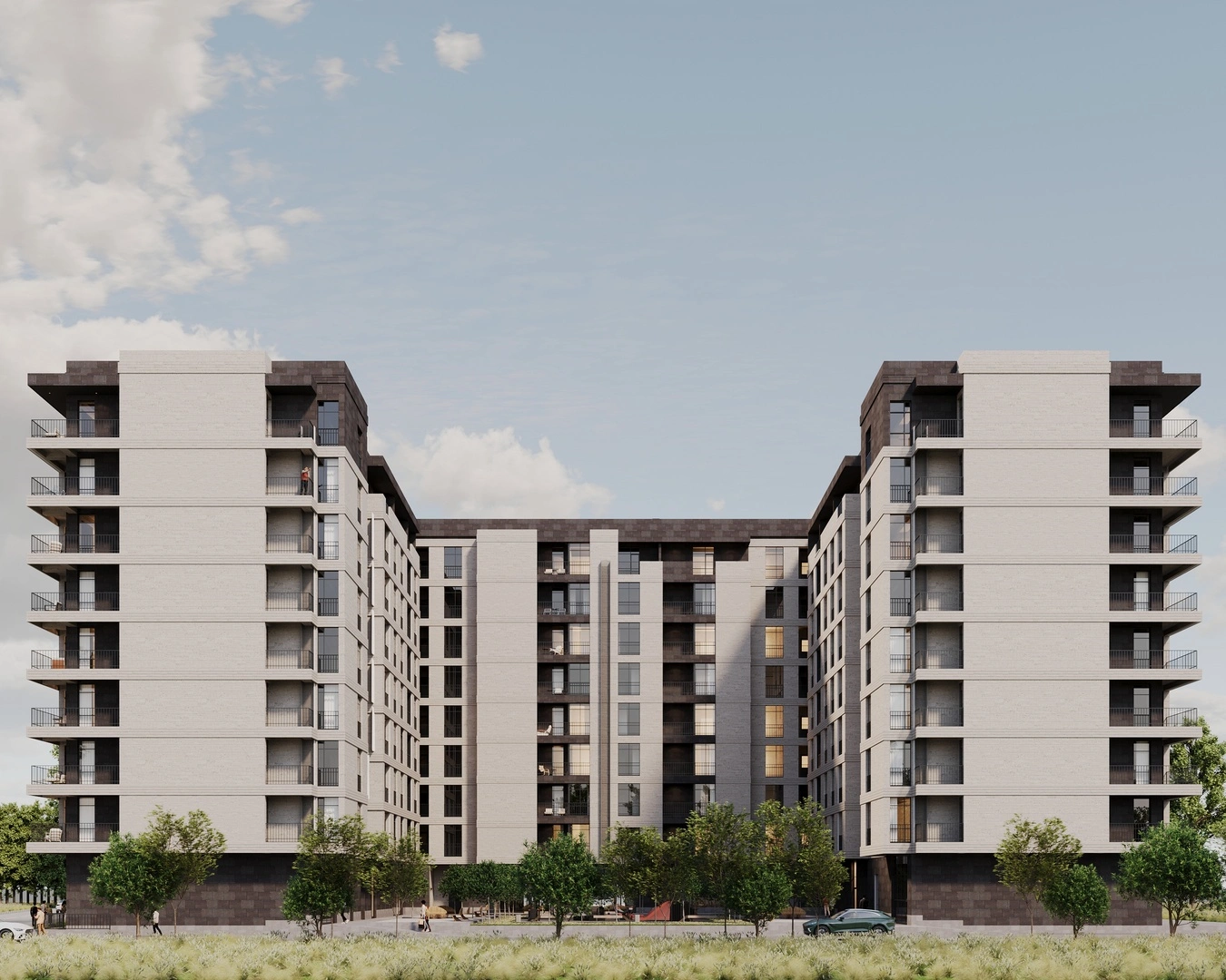 A multifunctional residential complex is planned at 5 Araratyan Street, Masis (plot area: 4,877 m²). The design is based on the client’s assignment, the architectural planning permit (16.11.2023), property registration certificate, engineering-geological conclusion, and geodetic survey.
